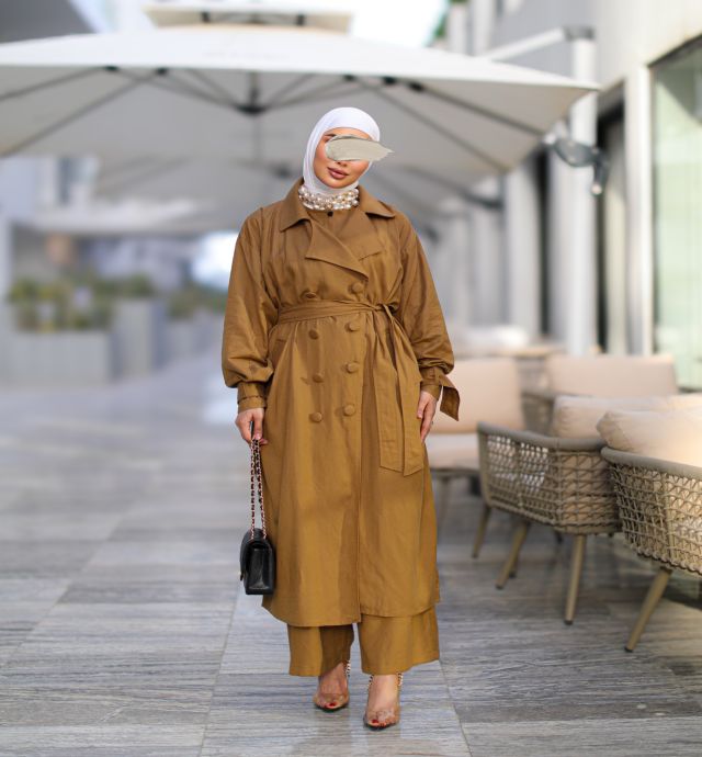 ثلاث قطع لنن ترنش كوت -فست-بنطلون