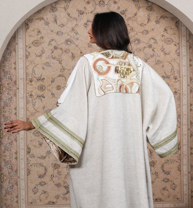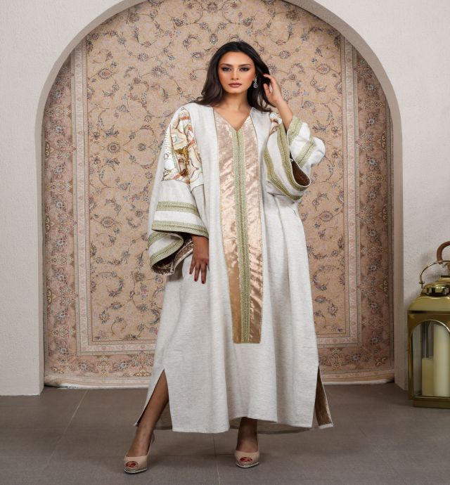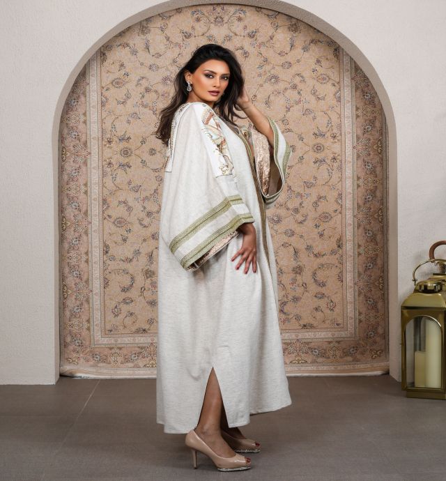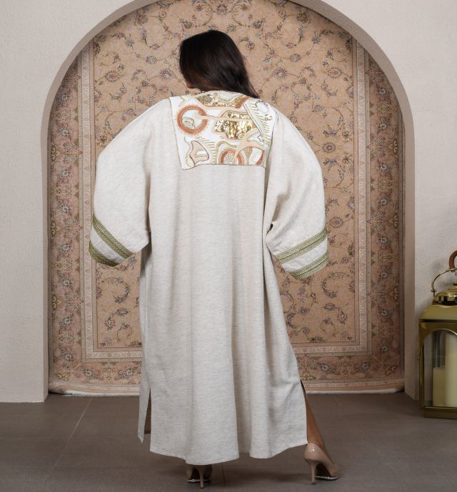 دراعه نسائيه لنن (قطن مطرز )فري سايز. الطول ٥٥انش